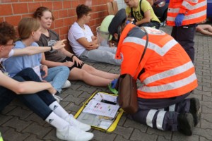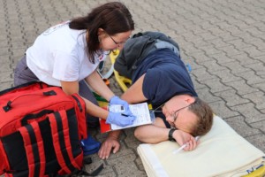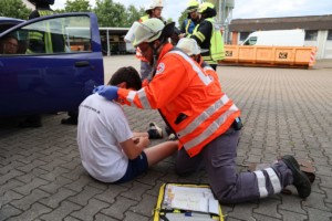 In der Übung wurde ein Verkehrsunfall angenommen, bei dem ein mit zwei Personen besetzter PKW in eine Gruppe von 10 Personen, die gerade zu einer Feier zusammengekommen waren, gefahren war. Verletzungen reichten von psychischen Ausnahmesituationen, über Hyperventilationen, diverse Schürfwunden, Prellungen und Knochenbrüchen bis hin zu Bewusstlosigkeit oder schwerere Verletzungen wie Schädel-Hirn-, Thorax-, oder Becken- bzw. Bauch-Traumata.