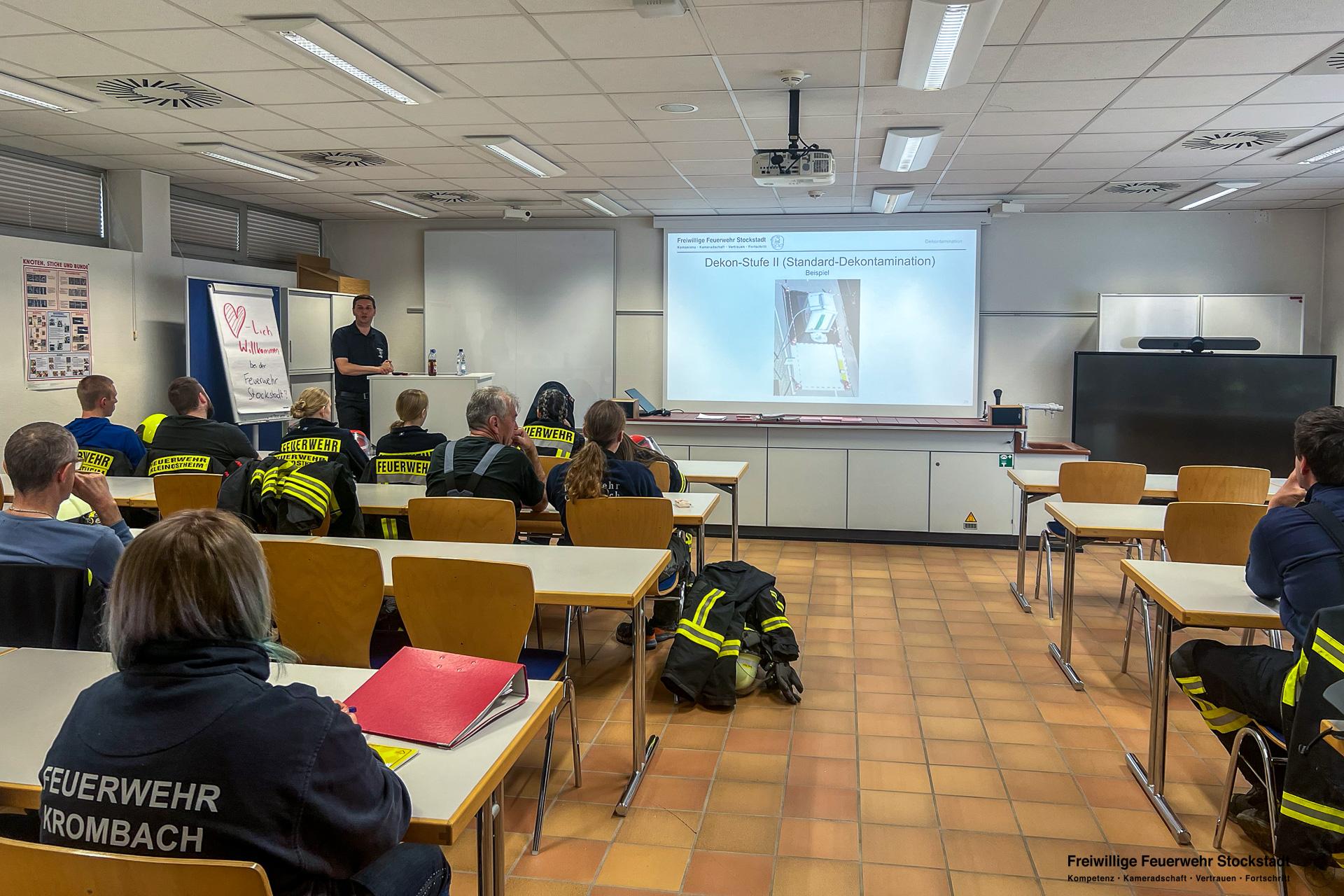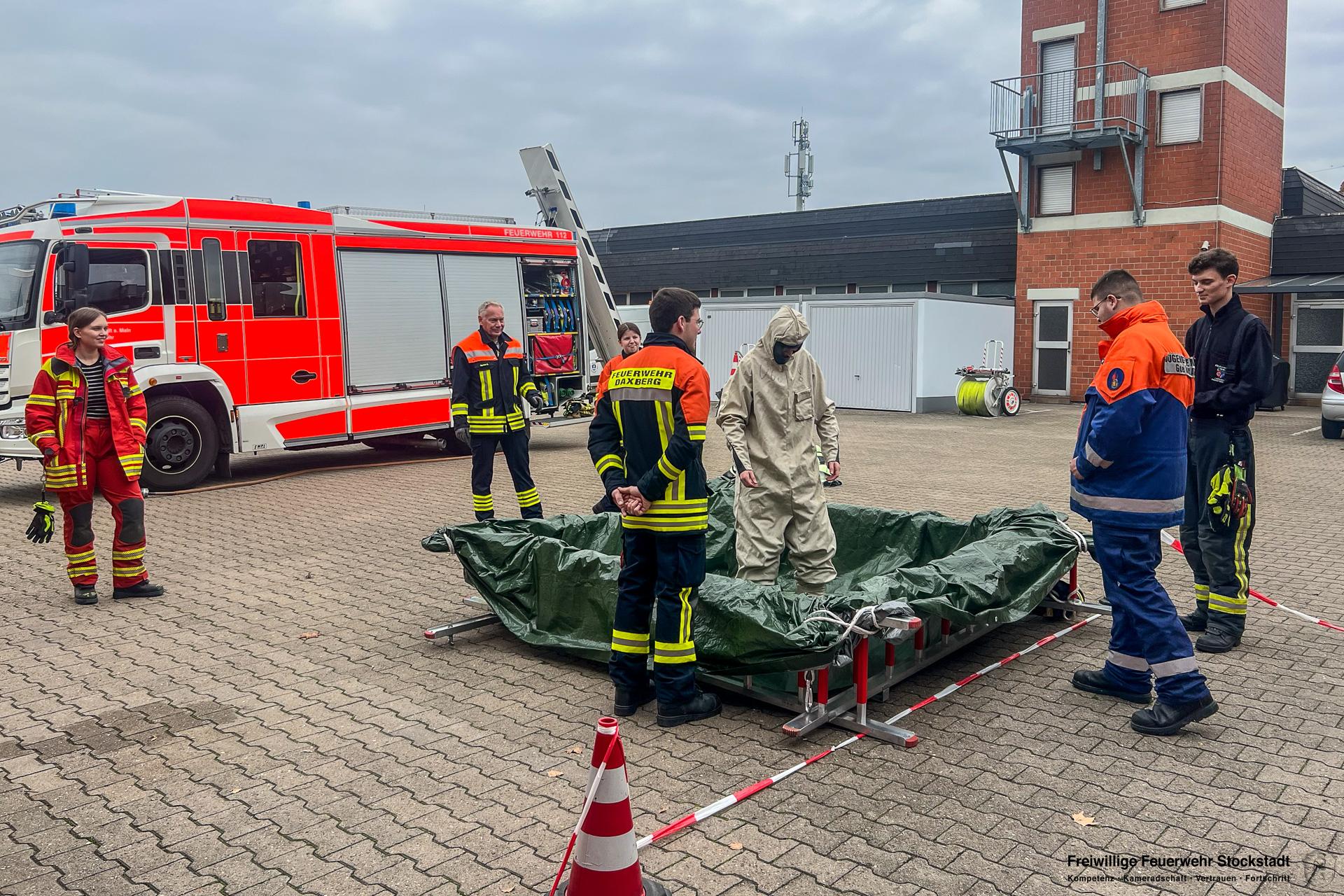 Am Samstag, 11.10.2025 konnten wir gleich zwei Gruppen zum MTA Zusatzmodul „ABC-Gefahren“ nach FwDV500 im Feuerwehrhaus Stockstadt am Main begrüßen. Die insgesamt 46 Teilnehmer kamen aus den Feuerwehren Daxberg, Unterafferbach, Wenighösbach, Haibach, Weibersbrunn, Alzenau, Feldkahl-Rottenberg, Jakobsthal, Heimbuchenthal, Kleinkahl, Mömbris-Hutzelgrund, Schöllkrippen, Heinrichsthal, Geiselbach-Omersbach, Königshofen, Bessenbach, Krombach, Mainaschaff, Karlstein und Kleinostheim. Wir hoffen, dass wir euch interessante Einblicke in das spannende Thema geben konnten.