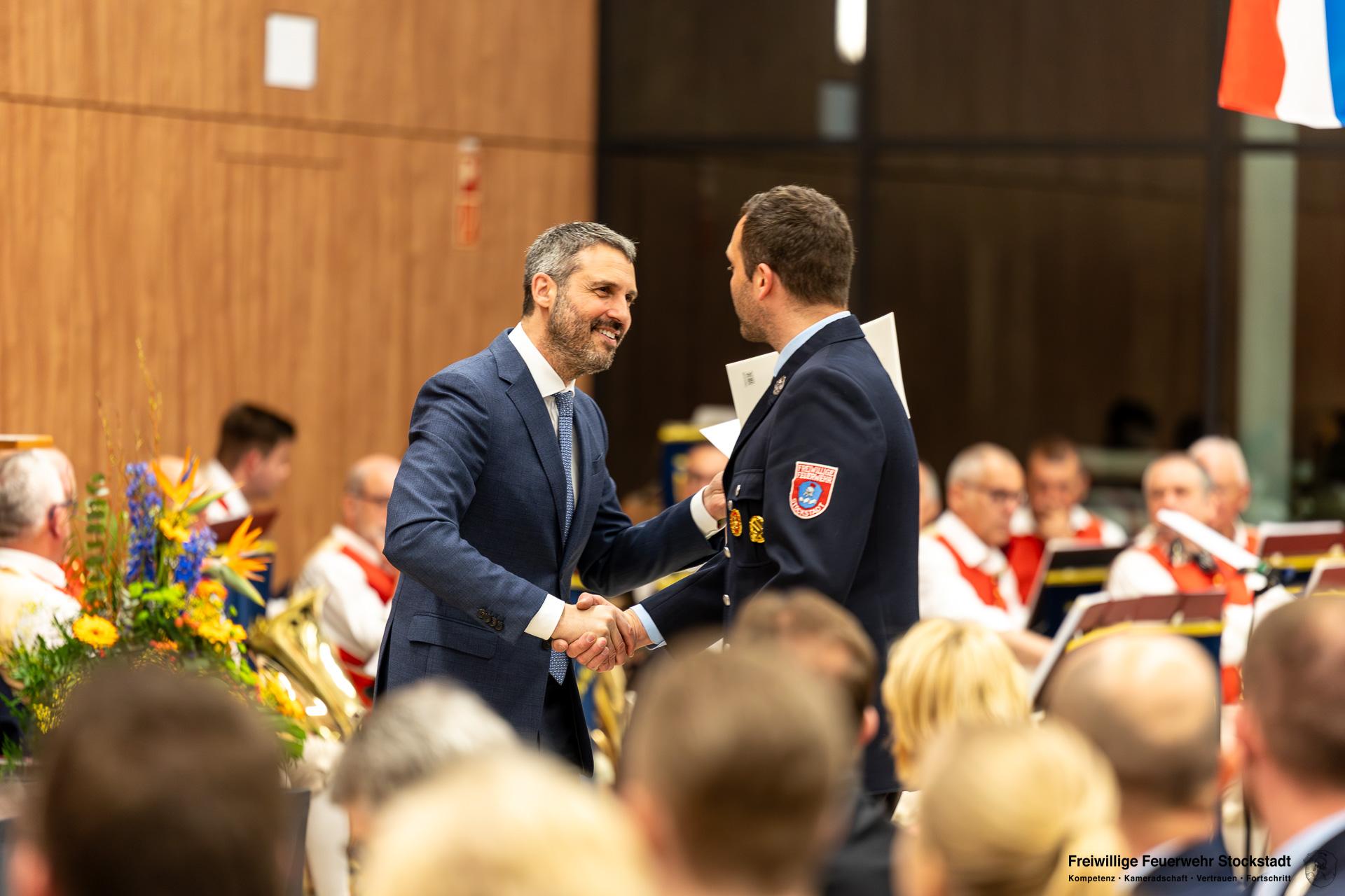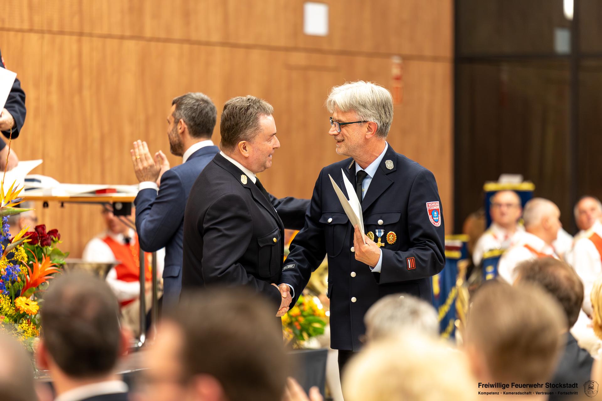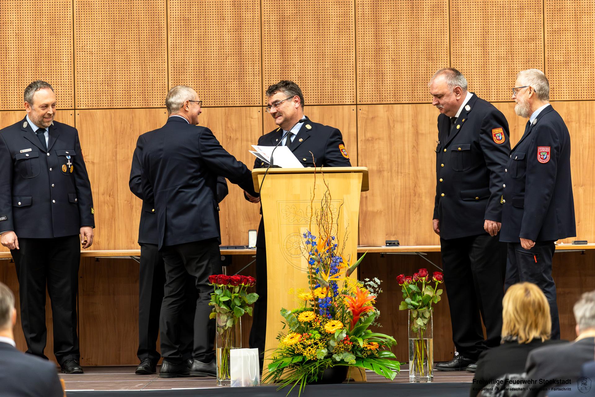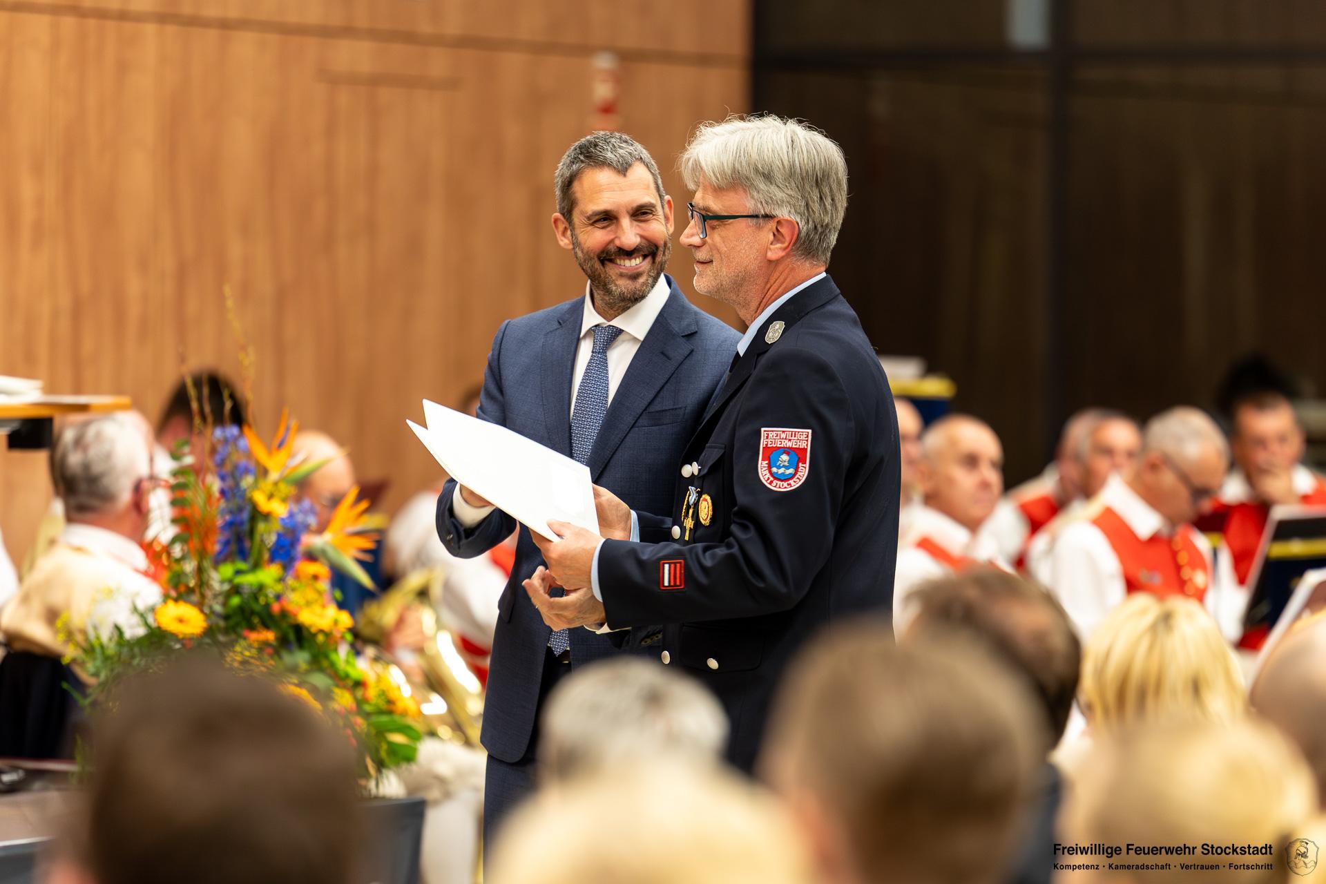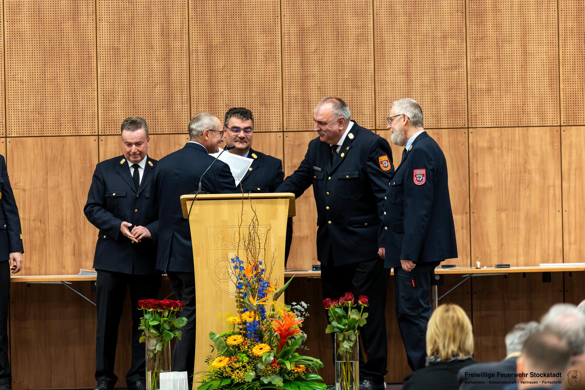 Am Freitagabend, 27.03.2026, wurden beim Ehrenabend des Kreisfeuerwehrverbandes drei Feuerwehrleute aus Stockstadt ausgezeichnet. Frank Bott erhielt das Bayerische Feuerwehr-Ehrenkreuz in Silber des Landesfeuerwehrverbandes, Rainer Griesemer wurde für 50 Jahre und Michael Kleinhenz für 25 Jahre aktive Mitgliedschaft in der Feuerwehr geehrt.