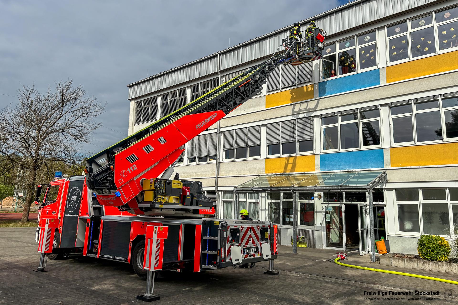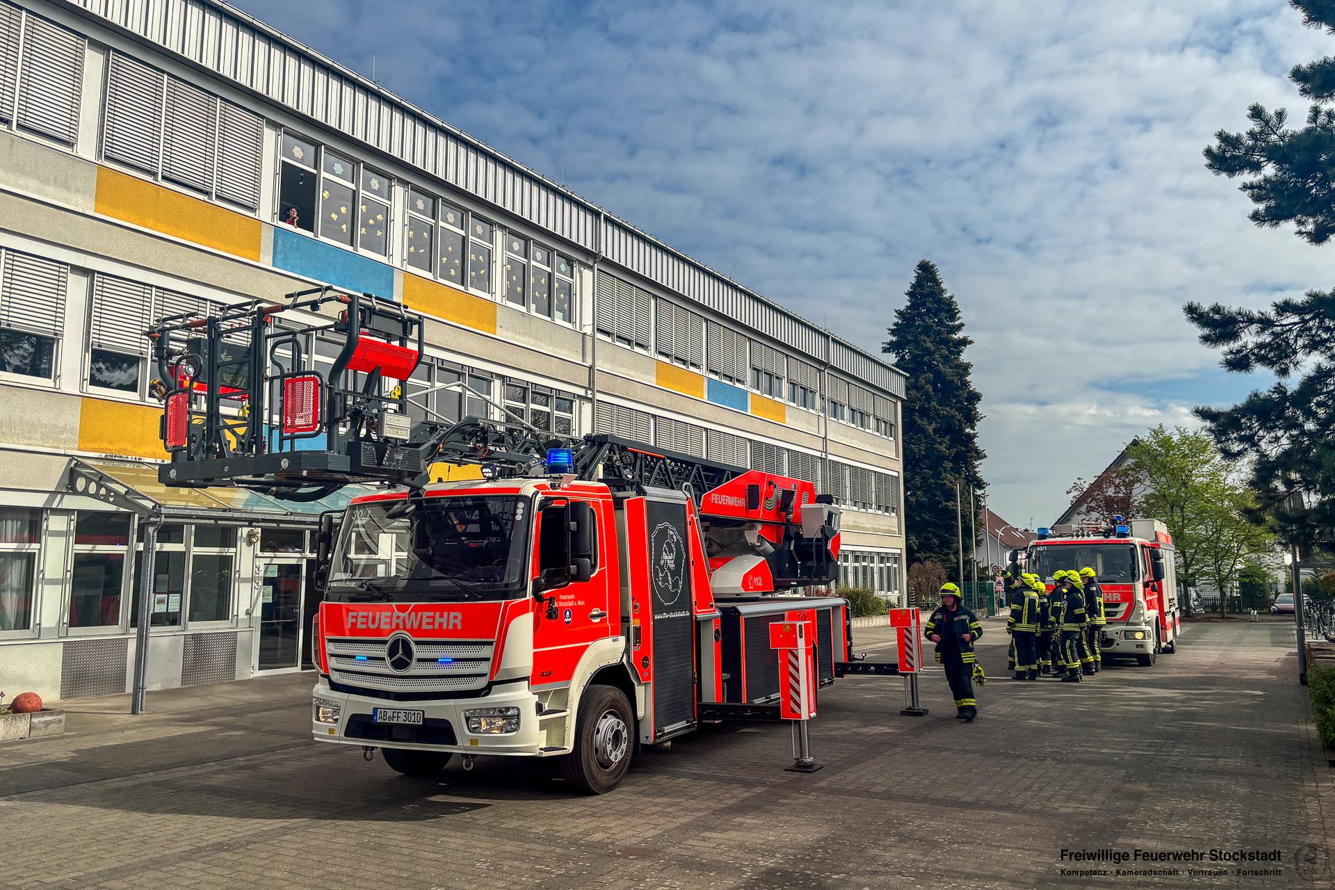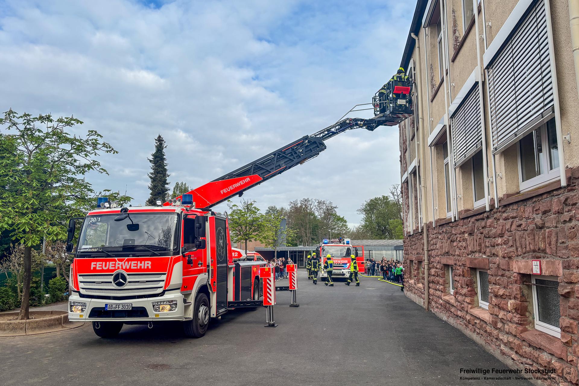 Einmal im Jahr besucht die Feuerwehr die Stockstädter Schulen. Bei unserem heutigen Besuch mit Blaulicht und Martinshorn haben die Schüler die Räumung ihrer Schule geübt. Danach durften sich die Schüler die Frauen und Männer der Feuerwehr mit Fahrzeugen und Ausrüstung aus der Nähe ansehen.