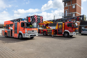 Zusätzlich zur Schulung mussten wir mit der Drehleiter auch noch gleich zwei Einsätze abwickeln. Um 12:28 Uhr unterstützten wir die benachbarte Feuerwehr Großostheim bei einem Einsatz, da deren Leiter derzeit zu Wartungsarbeiten im Herstellerwerk ist. Nur kurze Zeit später wurden wir um 15:28 Uhr zur Unterstützung des Rettungsdienstes in Stockstadt benötigt. Ein Patient musste schonend aus einem oberen Stockwerk geholt werden.