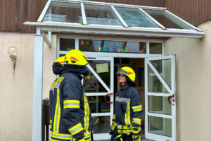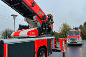 Und da bei einem Feueralarm auch die Feuerwehr kommt, haben wir jeweils auch mit Löschfahrzeug und Drehleiter an der jeweiligen Einrichtung vorbeigeschaut. Die Kinder haben der kurzen Übung mit Begeisterung zugesehen und konnten sich die voll ausgerüsteten Feuerwehrleute auch aus der Nähe anschauen.
