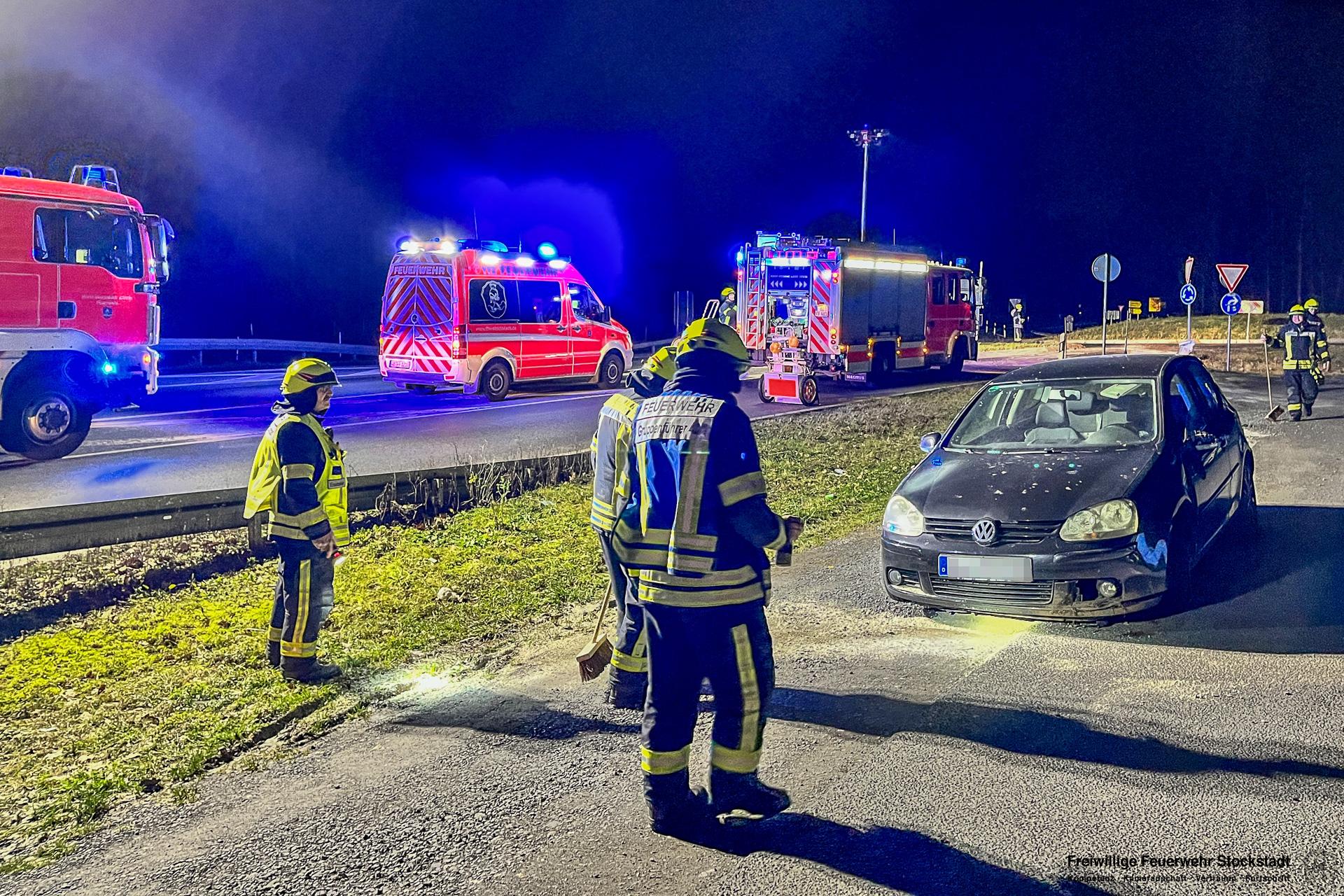 Bereits um 05:42 Uhr wurden wir am 2. Weihnachtsfeiertag, Dienstag, 26. Dezember 2023 zu einem Unfall auf die B26 alarmiert. Ein PKW war vermutlich über die Kreiselanlage an der Auffahrt zur B469 gefahren. Dabei wurde der Unterboden des Fahrzeugs beschädigt und Betriebsstoffe traten aus. Die Gefahrenstelle wurde von der Feuerwehr mit Ölbinder beseitigt.