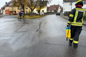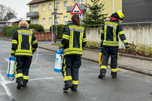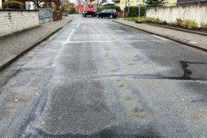 Einmal quer durch Stockstadt hatte sich heute Morgen eine Ölspur gezogen. Durch die leichte Nässe verteilte sich die Verunreinigung teilweise über die gesamte Fahrbahnbreite. Nach ca. drei Stunden hatten wir die Gefahrenstellen im Ortsgebiet beseitigt.