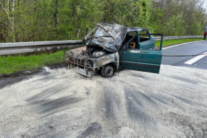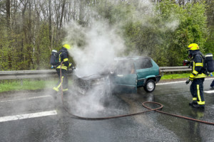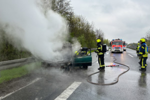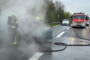 Wir wurden am Sonntag, den 16.04.2023 um 13:35 Uhr zu einem PKW-Brand auf die B469 alarmiert. Die alarmierten Kräfte fanden auf dem Beschleunigungsstreifen von der BAB3 kommend auf die B469 in Fahrtrichtung Amorbach einen PKW im Vollbrand vor. Der Brand konnte zügig unter Einsatz von schwerem Atemschutz mit einem C-Rohr abgelöscht werden. Die Abfahrt Stockstadt von der BAB3 in Richtung B469 musste voll gesperrt werden. Auch die B469 in Fahrtrichtung Amorbach musste für die Lösch- und anschließenden Aufräumarbeiten voll gesperrt werden. Die Sperrung musste ca. eine Stunde aufrechterhalten werden. Durch den Brand traten größere Mengen Kraft- und Betriebsstoffe aus, die sich auf die komplette Fahrbahn verteilten. Diese wurden von der Feuerwehr mit Ölbindemitteln aufgenommen.