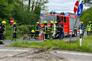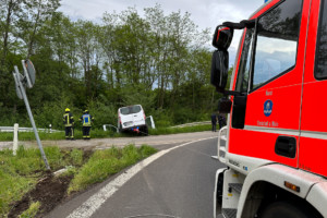 Bei der Abfahrt von der B469 ist am Freitagabend im Bereich der Mülldeponie ein Kleintransporter von der Fahrbahn abgekommen und hat in der Folge eine Leitplanke durchbrochen. Der Transporter kam schräg auf der Böschung zum Stehen, die Leitplanke verhinderte das Abrutschen in einen See. Beide Fahrzeuginsassen konnte das Fahrzeug eigenständig und unverletzt verlassen.