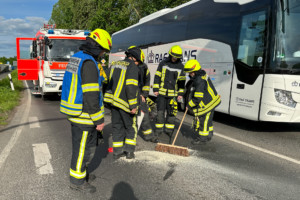 Zweiter Einsatz des Tages. Wir wurden auf die B26 zu einer Ölspur alarmiert. An mehreren Stellen der B26 konnten wir eine leichte Spur und Ölflecken finden. Die Gefahrenstellen wurden von uns beseitigt. Im Zuge der Erkundung konnten wir als Quelle eine Betriebstätte im Aschaffenburger Hafen ausfindig machen. Hier wurde die örtlich zuständige Feuerwehr Aschaffenburg tätig.