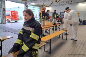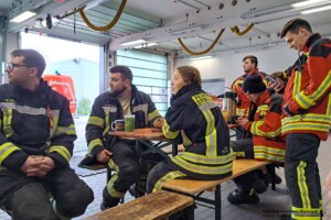 Eine besondere Herausforderung für die Einsatzkräfte stellte, die auf dem Dach des Gebäudes installierte PV-Anlage dar, die die Löscharbeiten über die Drehleiter zunächst erschwerte. Unter Atemschutz waren zehn Trupps zur Brandbekämpfung im Einsatz. Nach Abschluss der Löscharbeiten wurden sie im landkreiseigenen „Abrollbehälter Dekon“ dekontaminiert und anschließend vorsichtshalber ärztlich gesichtet.