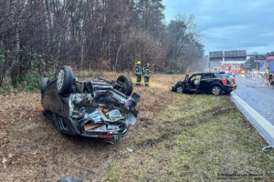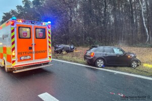 Die Feuerwehr Stockstadt a. Main wurde am Dienstagmorgen, dem 03.12.2024 um 07:42 Uhr zu einem Unfall auf die Autobahn A3 in Fahrtrichtung Würzburg gerufen. Dort waren zwei Personenwagen verunfallt, ein Fahrzeug hatte sich überschlagen und blieb auf dem Dach liegen. Alle Insassen konnten die Fahrzeuge eigenständig verlassen. Die Feuerwehr unterstütze bei der Versorgung der beiden Insassen und sicherte die Unfallstelle ab. Eine Fahrerin wurde verletzt in ein Krankenhaus eingeliefert.