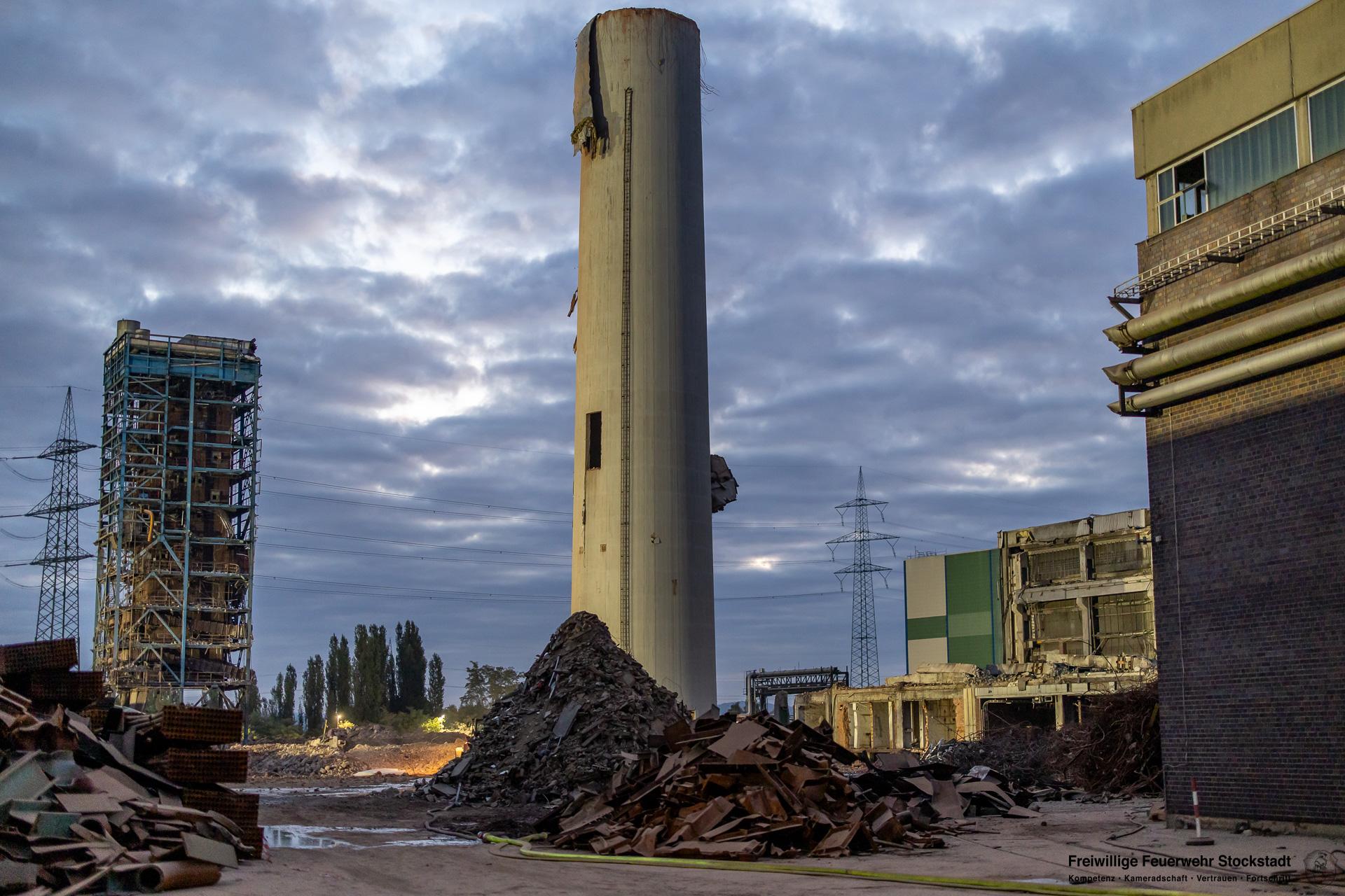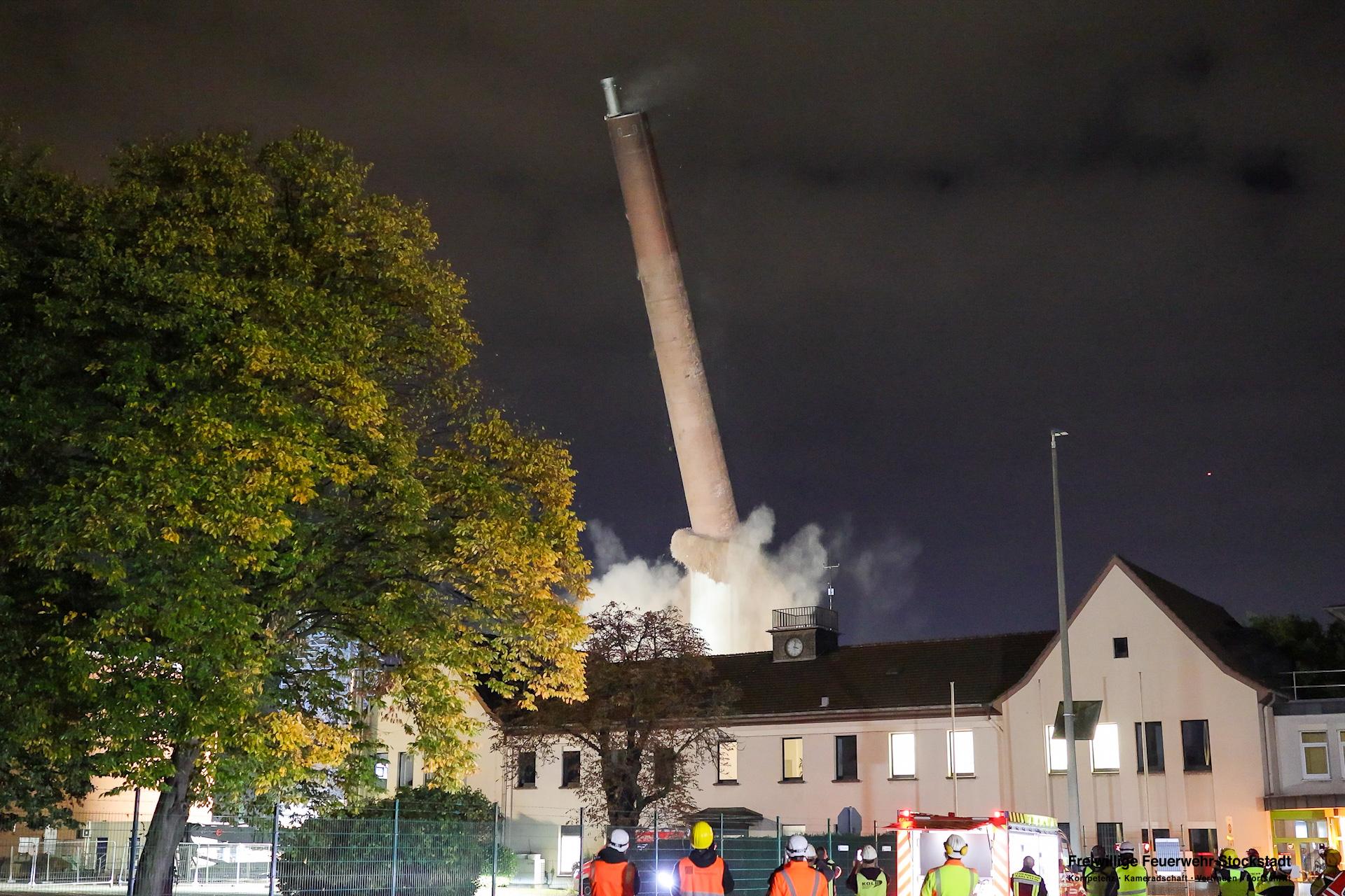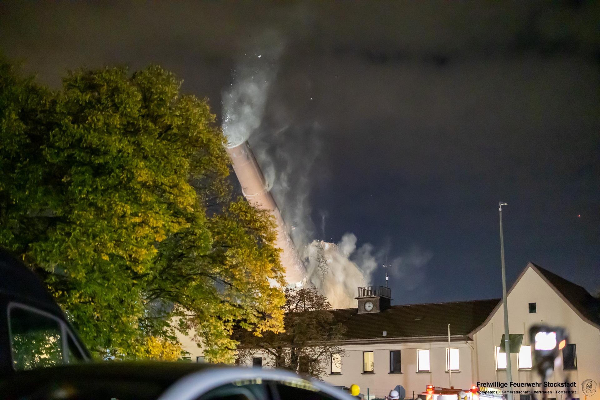 Die Feuerwehr Stockstadt war heute bei der Sprengung des Kamins des ehemaligen Papierwerks im Einsatz. Von Seiten der Feuerwehr wurde mit Wasserwerfern der Staub niedergehalten, Absperrungen vorgenommen und eine Einsatzbereitschaft gestellt. Unterstützt wurden wir von der Feuerwehr Großostheim mit einem Tanklöschfahrzeug und der Feuerwehr Karlstein mit der Drohne. Ebenfalls im Einsatz war das BRK Stockstadt.