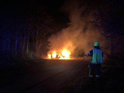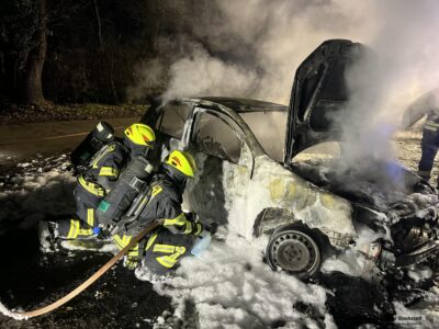 Am Montag den 22.12.2025 wurde die Feuerwehr Stockstadt um 4:16 Uhr zu einem PKW-Brand alarmiert. Auf dem Pendlerparkplatz an der Auffahrt zur B469 stand bei Eintreffen ein PKW in Vollbrand. Ein Trupp unter Atemschutz ging mit einem C-Rohr und Schaummittel vor und konnte den Brand schnell unter Kontrolle bringen. Eine größere Menge an auslaufenden Betriebsstoffe wurden provisorisch gebunden und an der weiteren Ausbreitung gehindert. Zur fachgerechten Reinigung und Entsorgung wurde die Einsatzstelle an den Kreisbauhof übergeben. Die Feuerwehr Stockstadt war mit 21 Einsatzkräften und fünf Fahrzeugen im Einsatz. Nach eineinhalb Stunden war der Einsatz beendet.