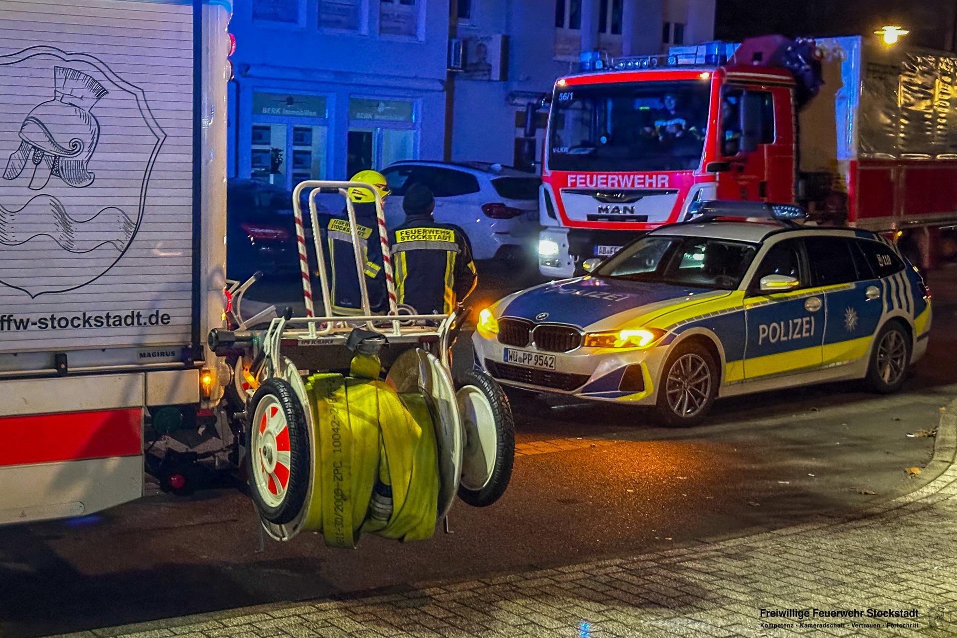 Die Feuerwehr Stockstadt wurde am Dienstag um 00:36 Uhr zu einem vermeintlichen Zusammenstoß eines Zuges mit einer Person an den Bahnhof Stockstadt alarmiert. Dort stand ein Nahverkehrszug, der aus Aschaffenburg kam und planmäßig in Richtung Darmstadt fuhr. Der Zugführer berichtete von einem Schlag mit vermutlichem Zusammenstoß. Die Feuerwehr Stockstadt begann sofort den Gleisbereich in Richtung Mainaschaff abzusuchen. Auf der Mainaschaffer Seite war die örtlich zuständige Feuerwehr Mainaschaff ebenfalls im Einsatz und suchte dort die Gleise ab. Nach kurzer Zeit konnten Steine auf den Gleisen gefunden werden, welche offensichtlich den Schlag verursacht hatten. Daraufhin wurde die Suche eingestellt und die Feuerwehr konnte zurückfahren. Während den Einsatzmaßnahmen war der Bahnverkehr in Stockstadt eingestellt. Neben der Feuerwehr Stockstadt war am Bahnhof ein Rettungswagen und die Polizei im Einsatz. Von der Feuerwehr Stockstadt waren 5 Fahrzeuge mit 25 Einsatzkräften vor Ort.