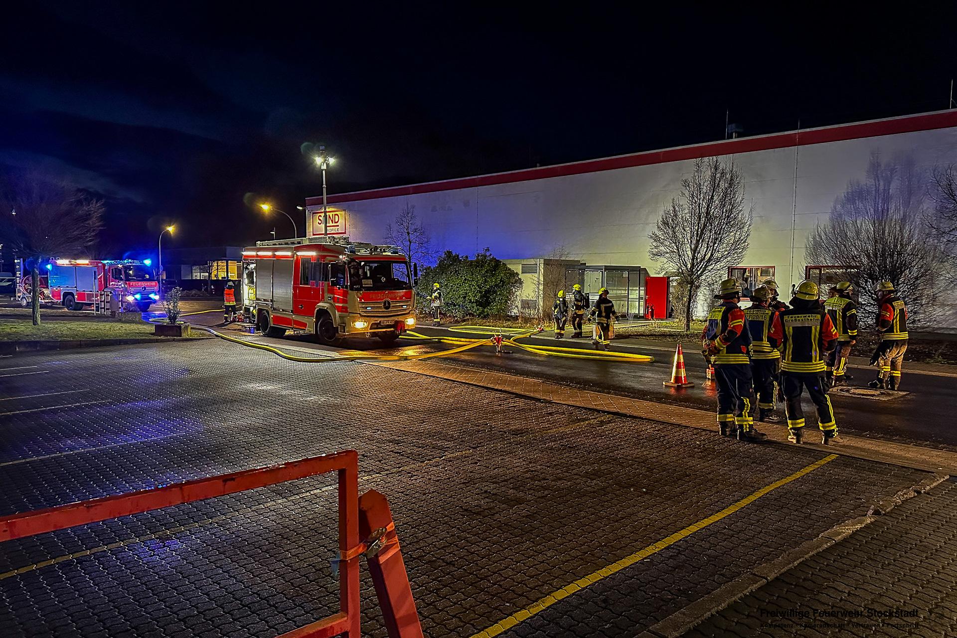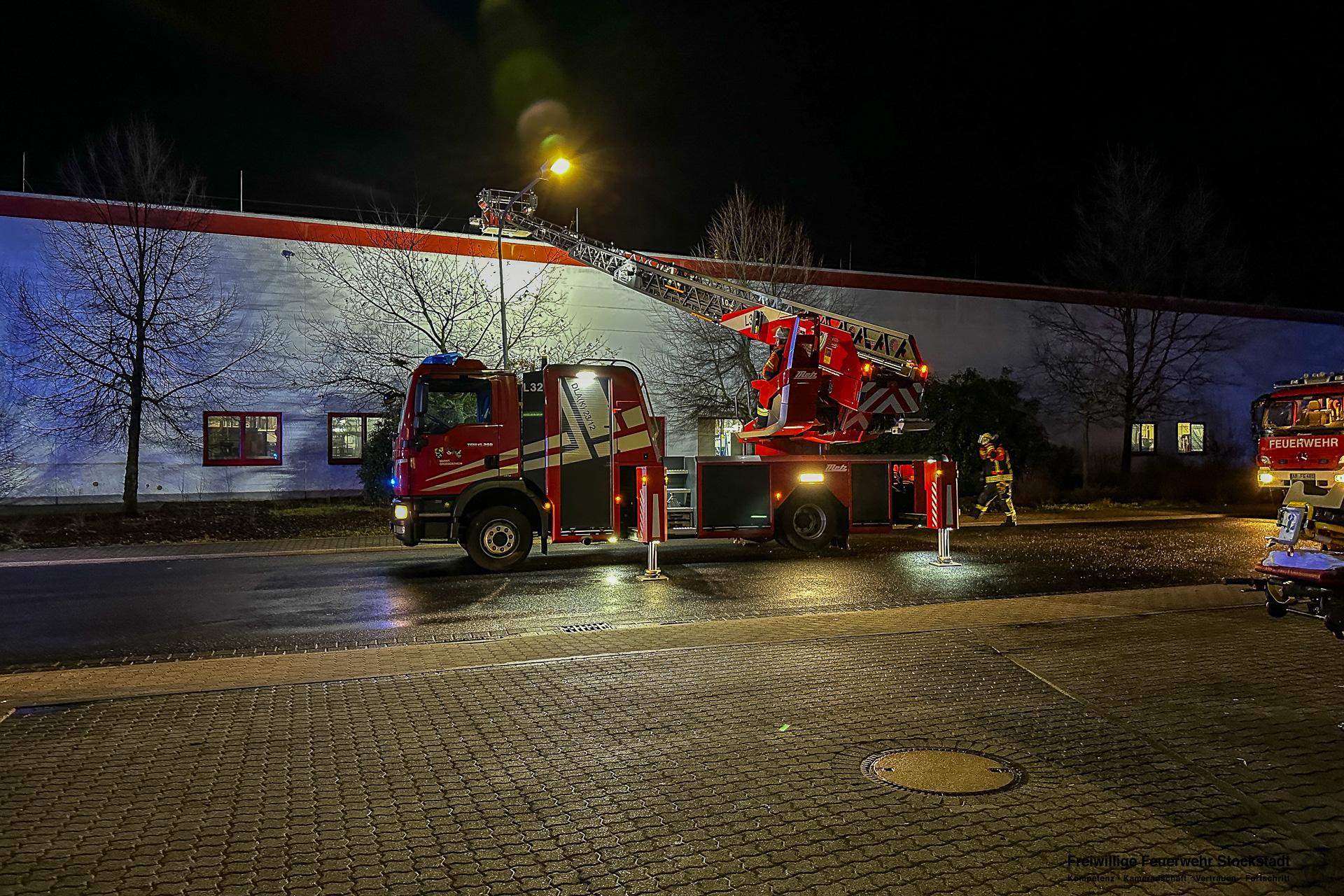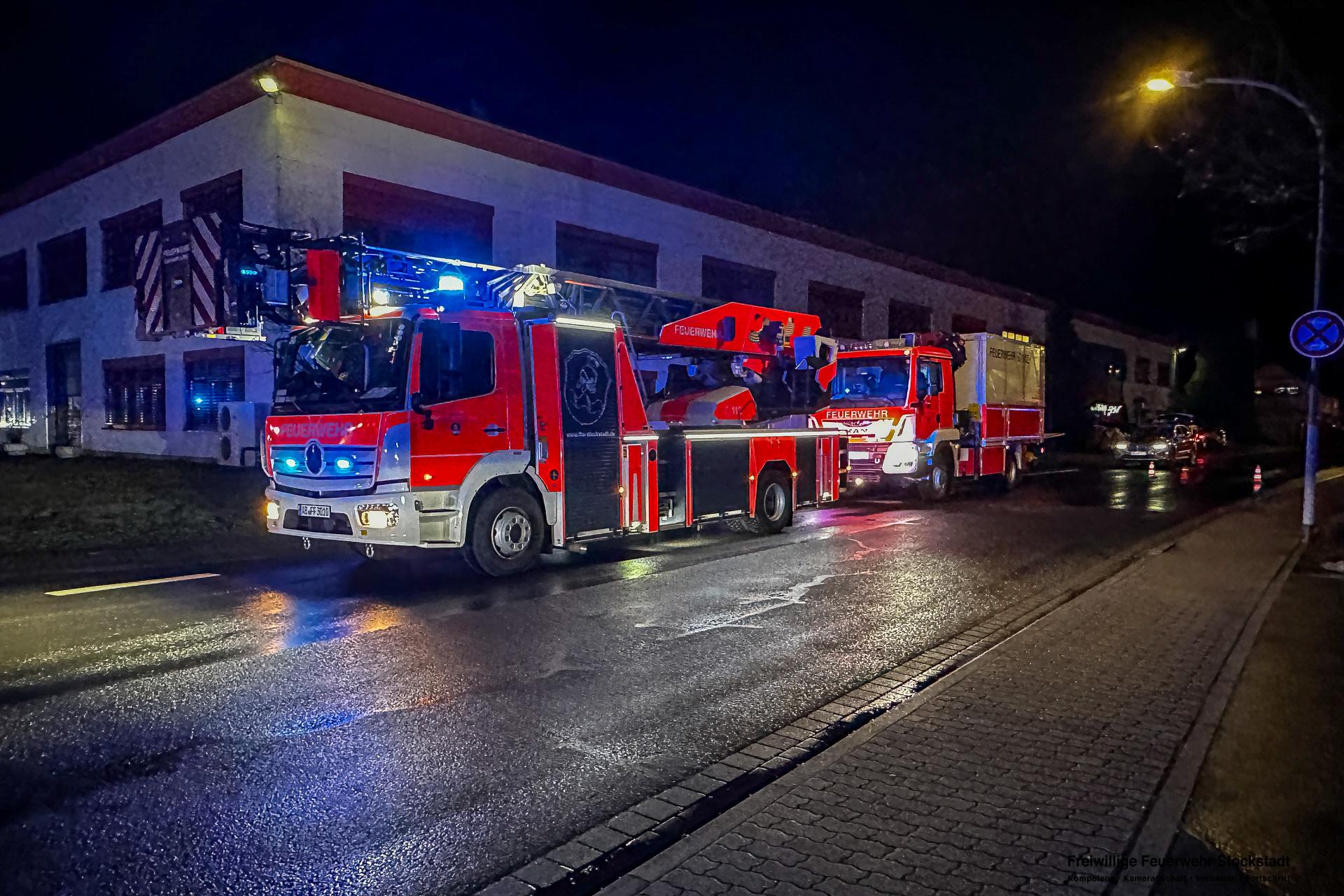 Die Feuerwehr Stockstadt am Main wurde am Mittwochabend, 11.02.2026, um 17:24 Uhr zu einer ausgelösten Brandmeldeanlage (BMA) eines Fertigungsbetriebes in die Dr.-Patt-Straße ins Stockstädter Industriegebiet alarmiert. Bei Eintreffen der Einsatzkräfte stellte sich heraus, dass zwei Produktionsanlagen in Brand geraten waren. Die Produktionshalle war stark verraucht. Mitarbeiter hatten bereits erste Löschmaßnahmen eingeleitet. Umgehend wurde durch die Feuerwehr das Alarmstichwort auf Brand 3 (B3) angepasst und weitere Kräfte aus Stockstadt und Großostheim an die Einsatzstelle alarmiert.