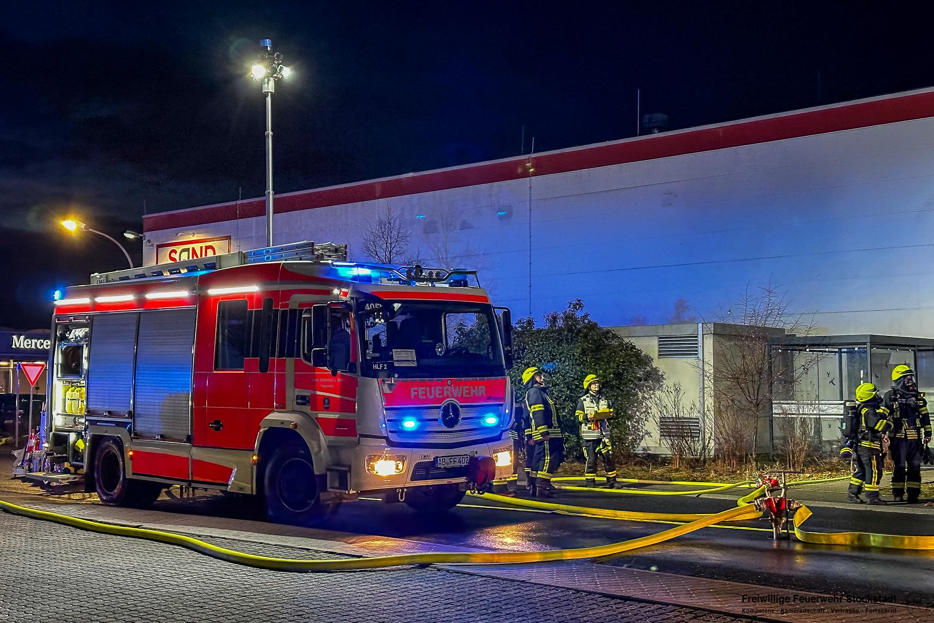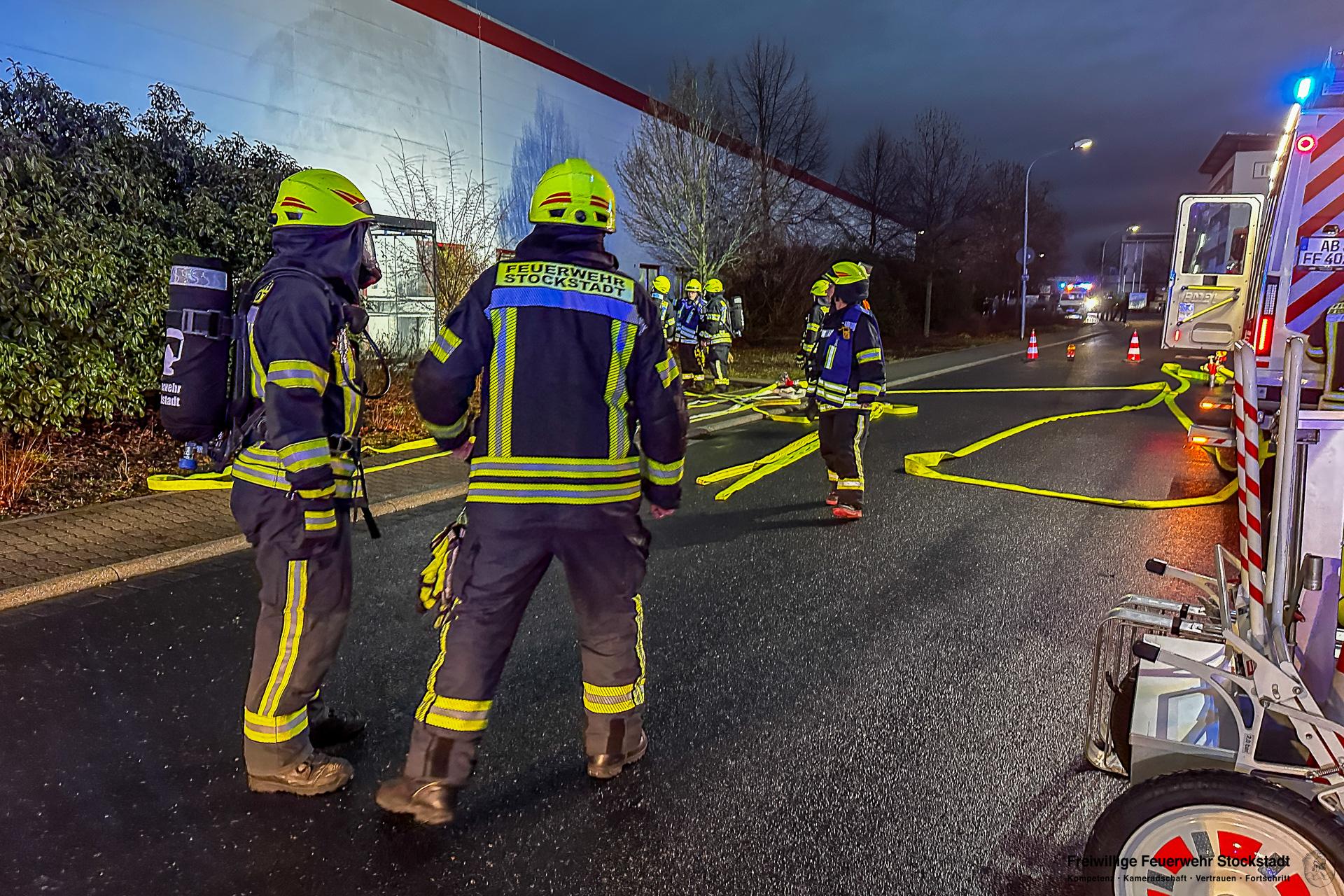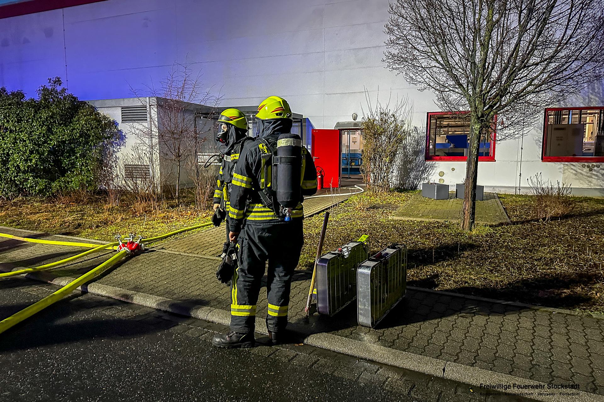 Die Feuerwehr Stockstadt am Main wurde am Mittwochabend, 11.02.2026, um 17:24 Uhr zu einer ausgelösten Brandmeldeanlage (BMA) eines Fertigungsbetriebes in die Dr.-Patt-Straße ins Stockstädter Industriegebiet alarmiert. Bei Eintreffen der Einsatzkräfte stellte sich heraus, dass zwei Produktionsanlagen in Brand geraten waren. Die Produktionshalle war stark verraucht. Mitarbeiter hatten bereits erste Löschmaßnahmen eingeleitet. Umgehend wurde durch die Feuerwehr das Alarmstichwort auf Brand 3 (B3) angepasst und weitere Kräfte aus Stockstadt und Großostheim an die Einsatzstelle alarmiert.