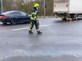 Der Montagmorgen begann für die Feuerwehr Stockstadt mit der Alarmierung zu einer Ölspur auf der B26 im Bereich der Kreuzung zur AB16. Nach Erkundung stellte sich heraus, dass sich die Ölspur in Abschnitten vom Waldfriedhof bis zur Auffahrt auf die B469 zog. Insbesondere waren beide Kreisel zur B469 betroffen. Die Gefahrenstellen wurden von der Feuerwehr beseitigt. Einzelne Abschnitte der B26 mussten, während der Arbeiten jeweils kurzzeitig gesperrt werden.