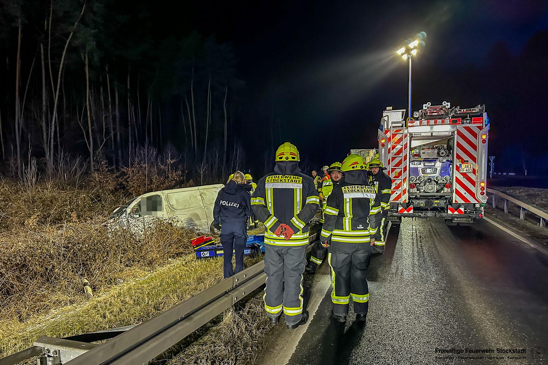Am Samstagmorgen, 24.01.2026, wurde die Feuerwehr Stockstadt um 05:36 Uhr zu einem Verkehrsunfall auf die Bundesstraße B26 alarmiert. Gemeldet war ein Verkehrsunfall mit einer eingeklemmten Person. Im Bereich der beiden Kreisel zur B469 konnte die Unfallstelle vorgefunden werden. Hier war ein Opel-Transporter von der Fahrbahn abgekommen, hatte Verkehrsschilder und einen Wildzaun umgefahren, um dann in […]