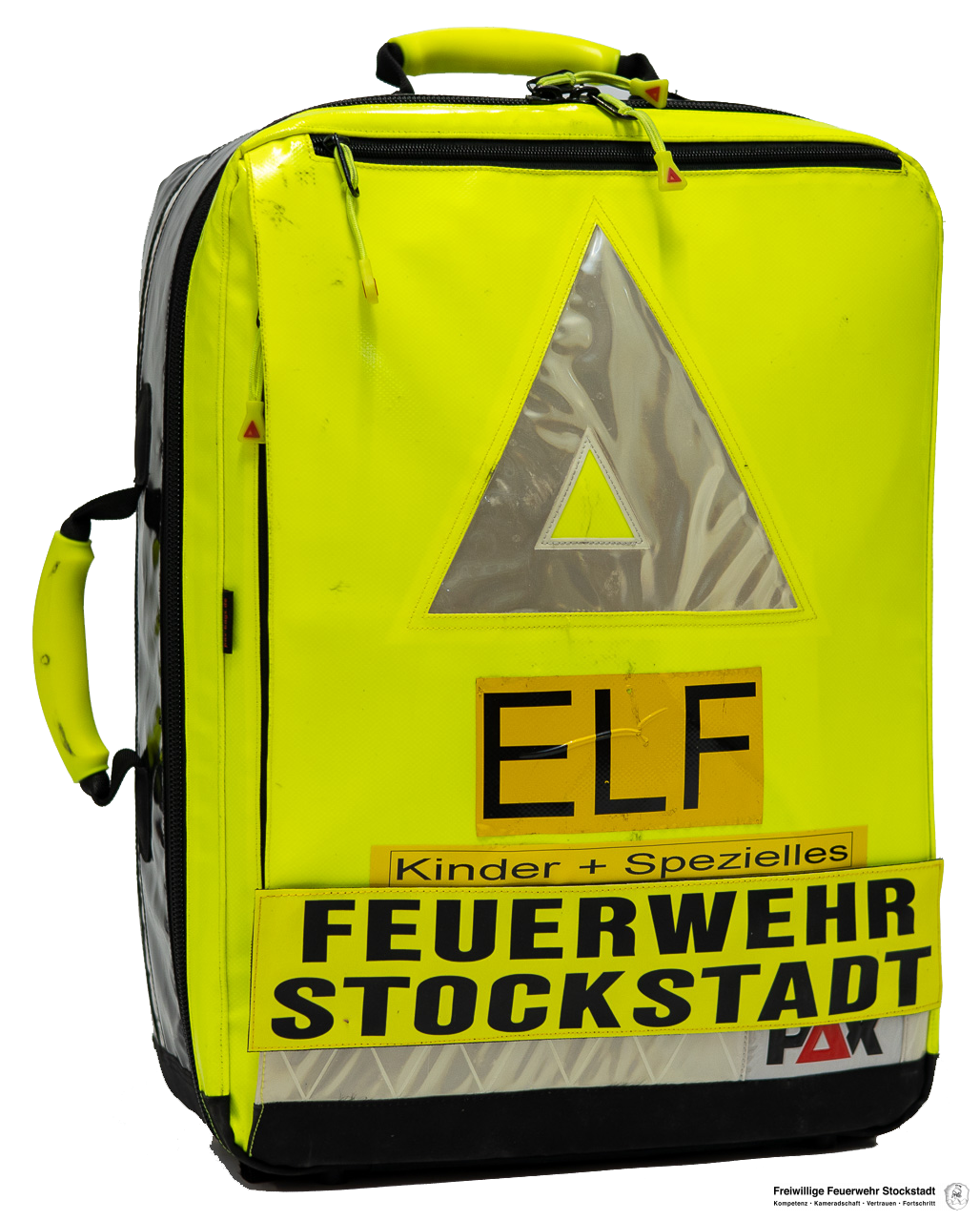 Spezielle Szenarien benötigen spezielle Ausrüstung. Dieser Rucksack enthält Equipment, das für die Anatomie von (Klein-)Kindern entwickelt wurde, zum Beispiel eine kleinere Blutdruckmanschette oder einfach ein kleiner Mutmacher in Form eines Teddys.
